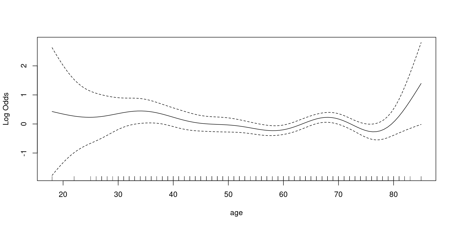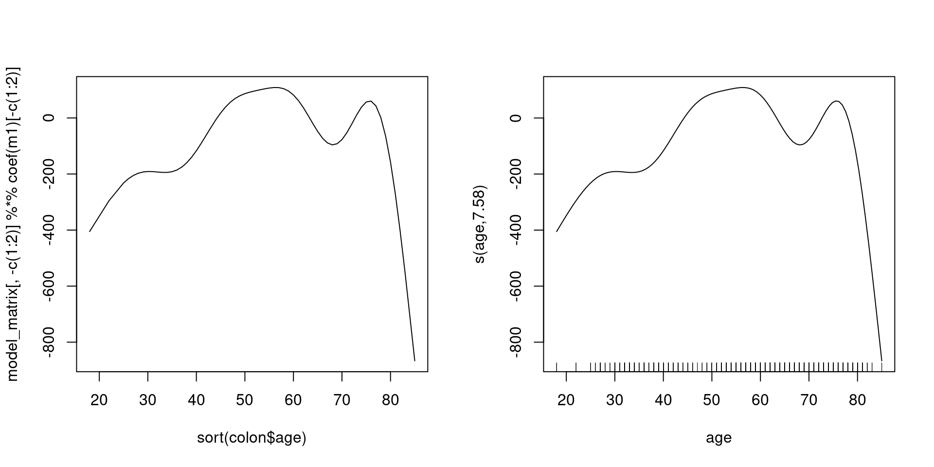 points(age.grid, predict(cs1, newdata = data.frame(age=age.grid, sex = 1)), col=1, lwd=1, type="l")