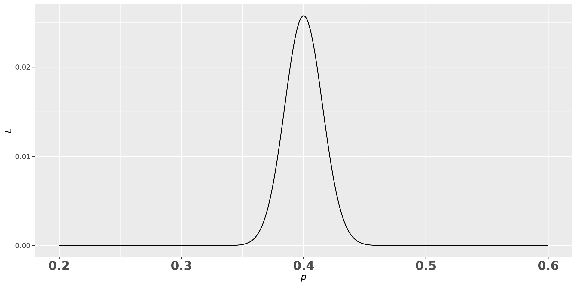 동전 앞면이 나올 확률 \(p\)에 따른 가능도 \(L\)