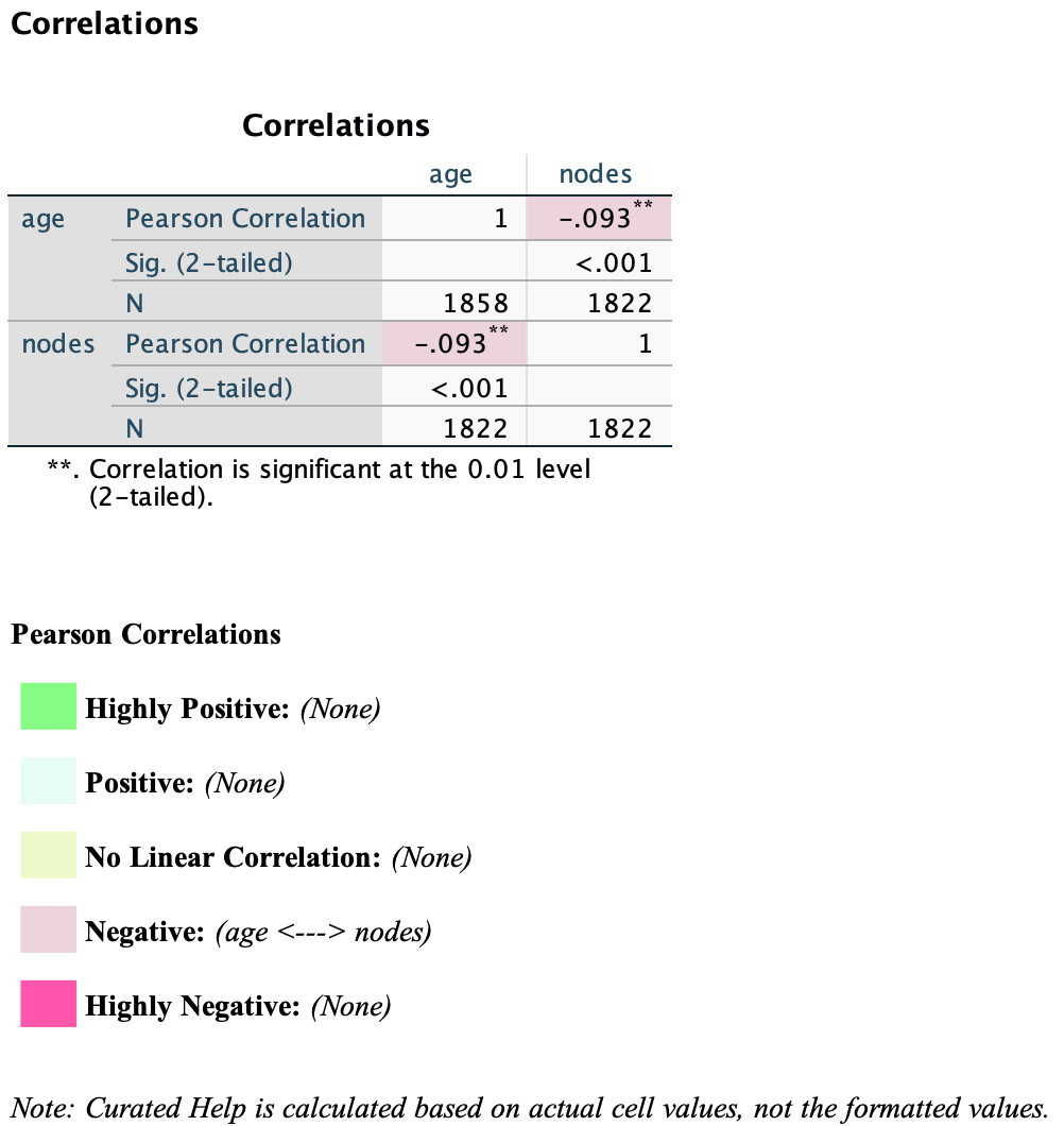 There is a weak negative, yet statistically significant, correlation between age and nodes.