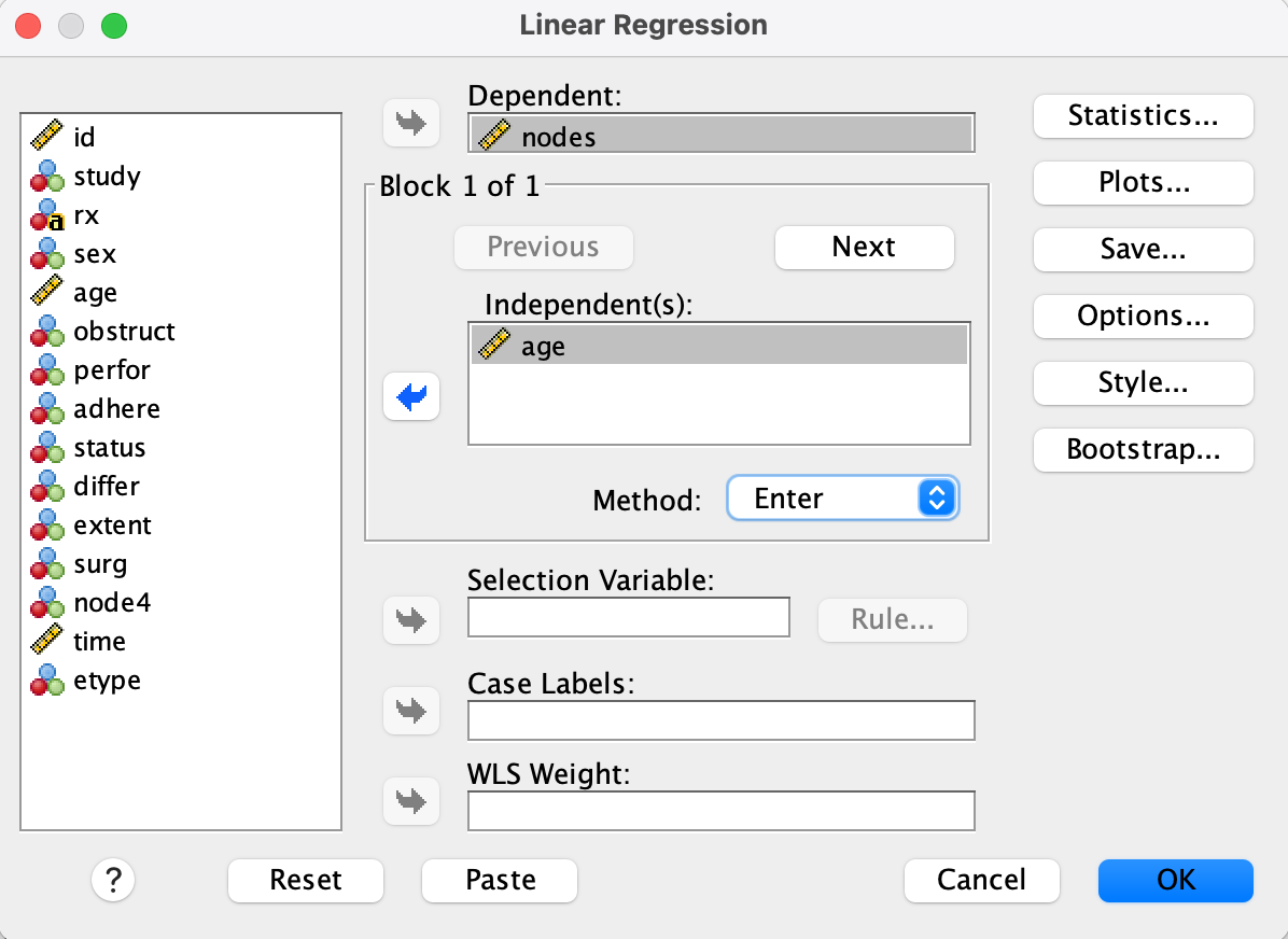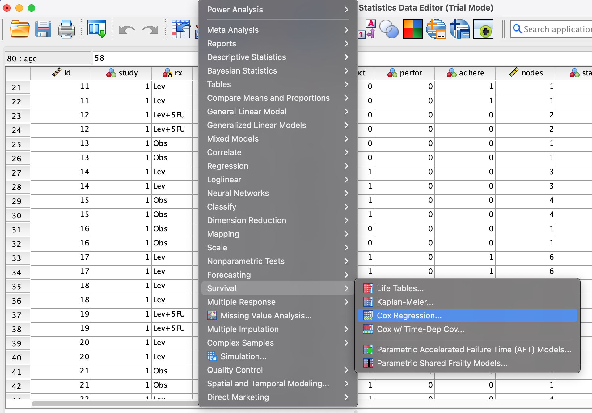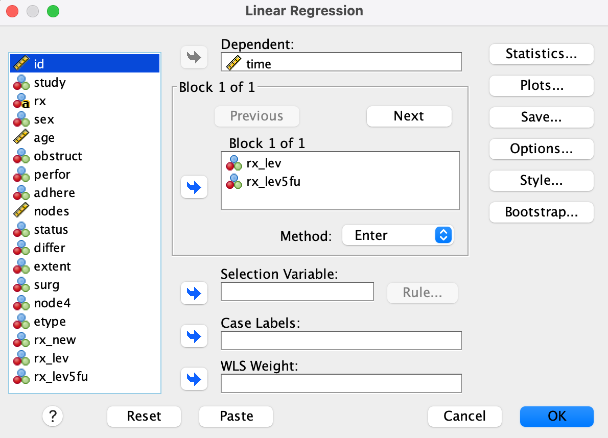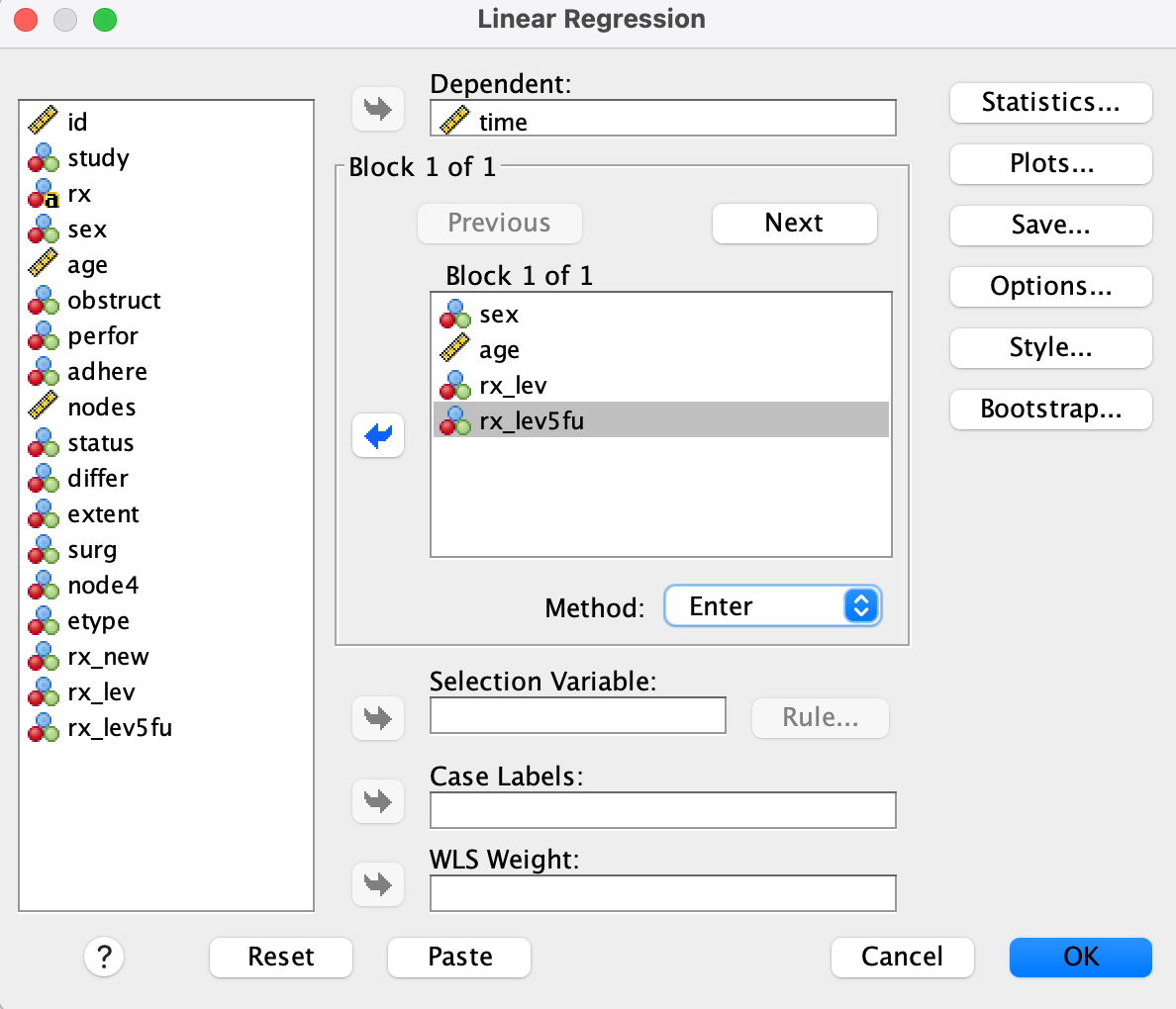 Add all predictors (e.g., sex, age, rx) to Independent(s)