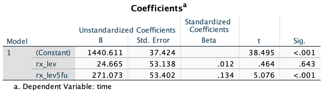 Now that rx_new is numeric, SPSS will automatically create dummy variables when used in regression, BUT it will use the lowest number as the reference group (e.g., 1 = Lev).