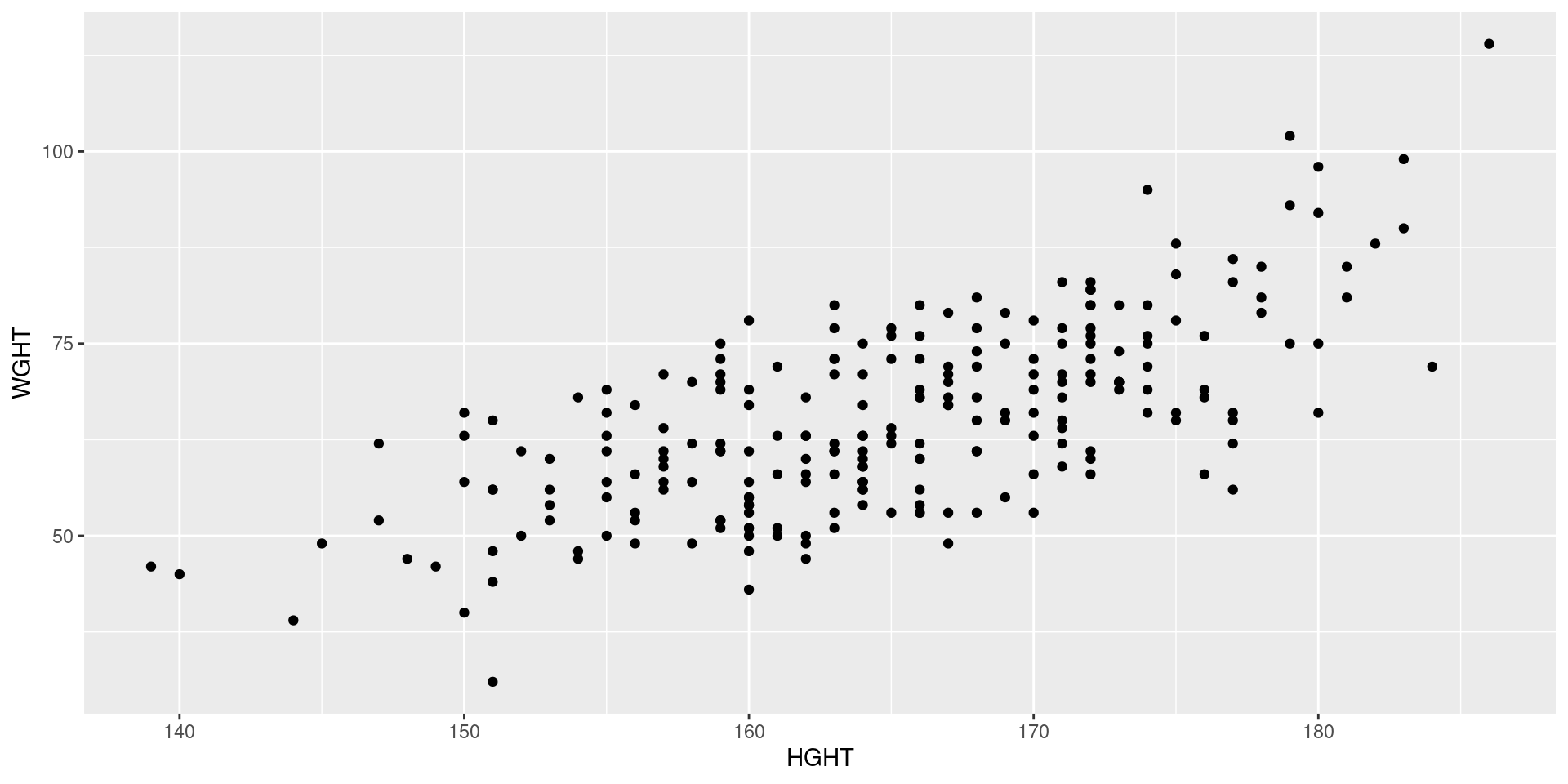 ggplot(aes(x = HGHT, y = WGHT)) +